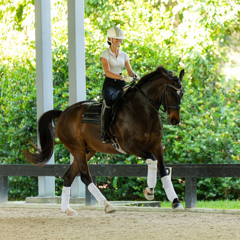 dressage rider based out of Wellington, FL. Eleni specializes in improving a horse's natural gaits and teaching riders how to develop a true connection with their horses. Eleni has earned her bronze and silver medals, and has competed in the FEI levels up to Grand Prix. Eleni is a passionate advocate for all horses no matter breed, discipline, or level. Her passion of teaching comes from a place of horsemanship, and a true understanding of a horse's mind, body, and spirit. She loves to connect with pairs and help the perform in harmony. Eleni is currently in full training with Marco Bernal to continue her education.